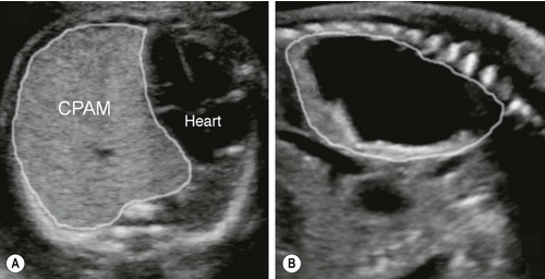 Trên siêu âm thai, bệnh nang tuyến phổi có thể biểu hiện bằng một nang lớn, nhiều nang nhỏ hoặc một khối tăng âm đồng nhất trong lồng ngực.