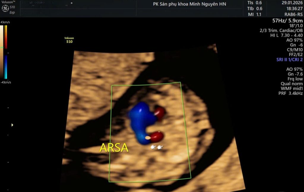 Chị H. mang thai 22 tuần đến phòng khám Dr Tú y học bào thai với kết quả siêu âm hình thái từ một cơ sở khác. Trên phiếu có ghi: động mạch dưới đòn phải lạc chỗ ARSA.