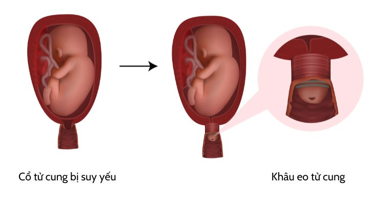 Hở eo cổ tử cung bẩm sinh hoặc mắc phải.