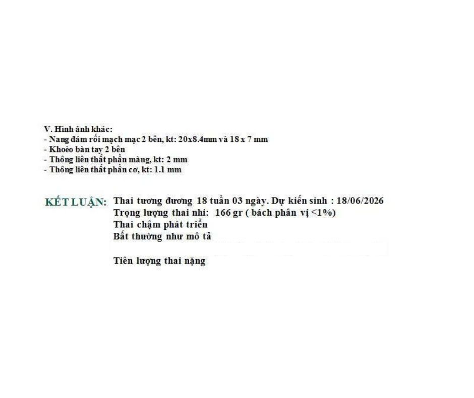 Khi siêu âm lại đầy đủ kết quả cho thấy thai nhỏ nhưng dòng máu nuôi thai còn trong giới hạn cho phép. Kế hoạch sẽ là theo dõi sát mỗi 7–10 ngày thay vì can thiệp sớm.