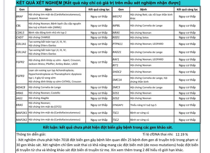 Kết quả nguy cơ thấp không có nghĩa là 100% bình thường.